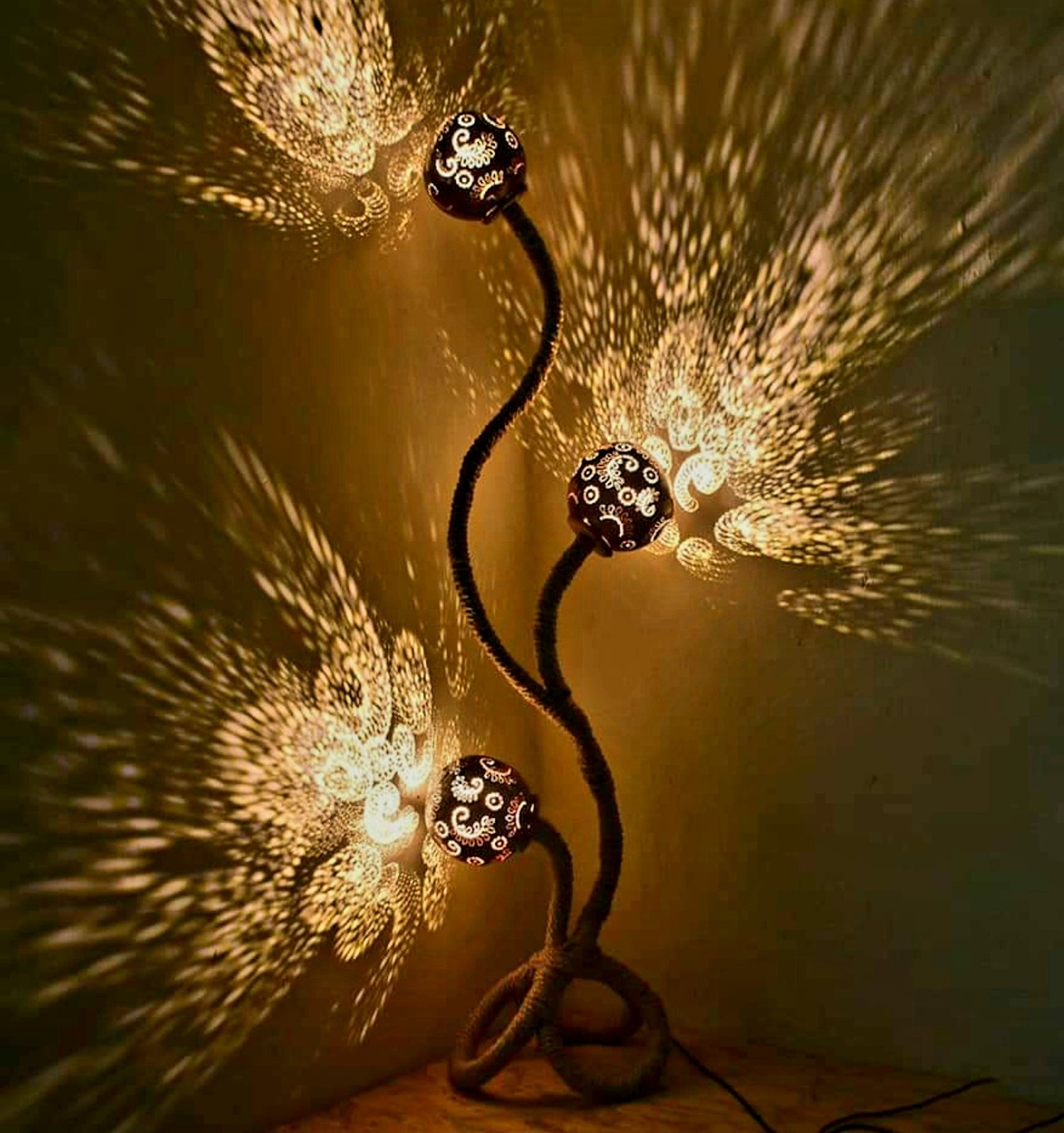 Tropical winding 'Serpentine' theme based floor lamp at any time in your home,will surely be an eye catcher.( bulbs included )All Miral India pieces are hand crafted and unique.